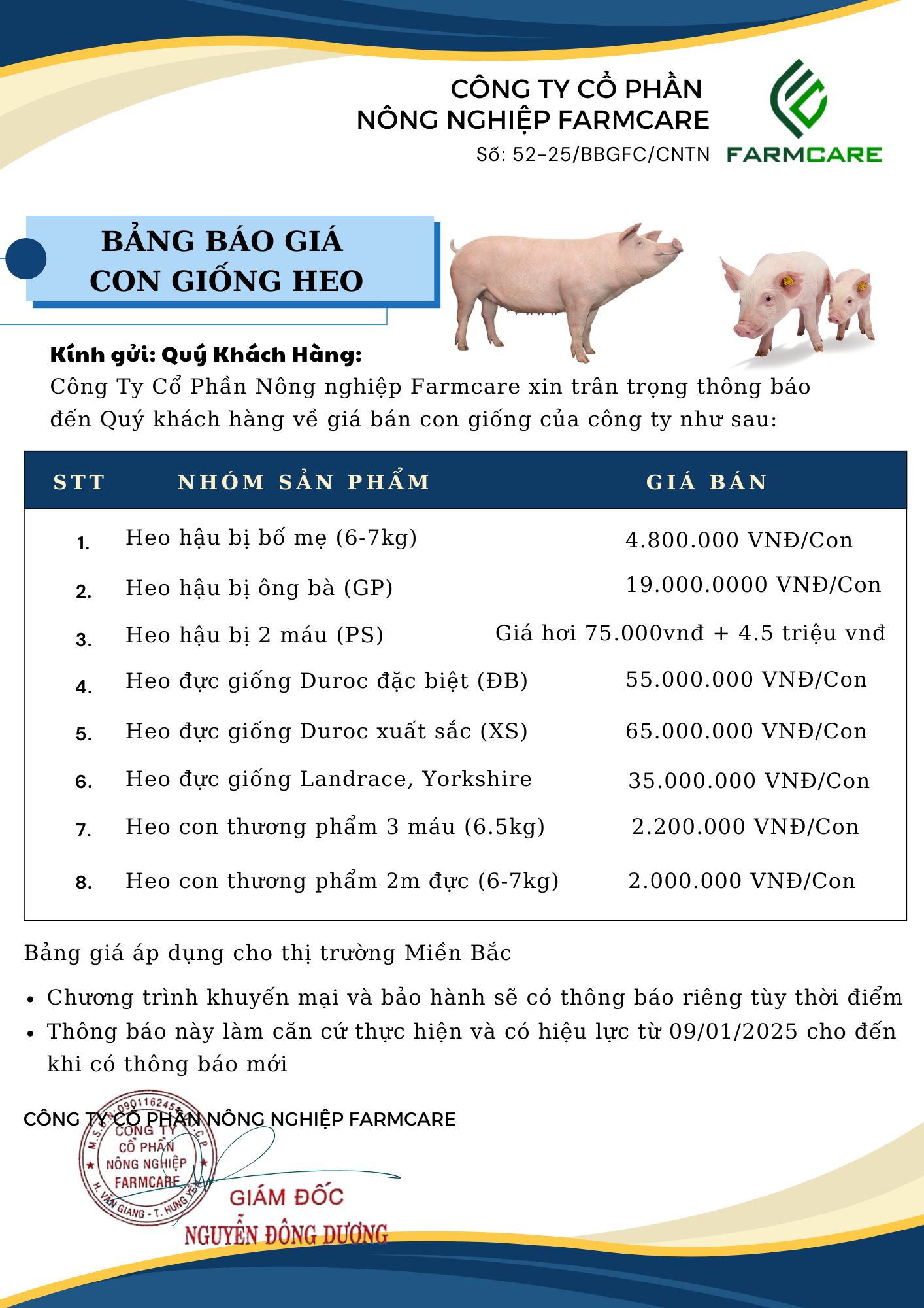 Căn cứ vào năng lực sản xuất, cũng như tình hình thị trường heo giống tại miền bắc chúng tôi xin gửi tới quý khách hàng thông báo điều chỉnh giá bán heo theo bảng báo giá sau.