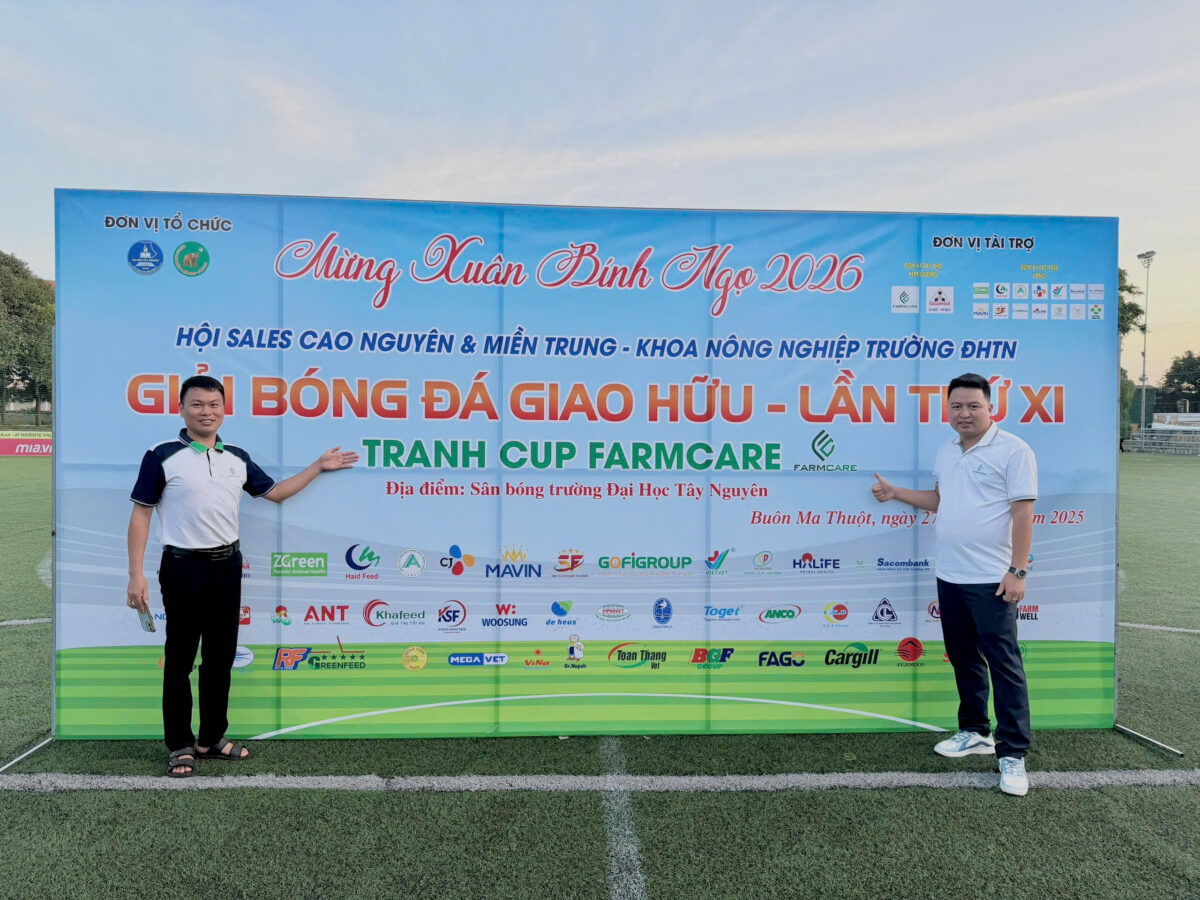 Ngày 27 tháng 12 năm 2025 vừa qua, Công ty CP Nông nghiệp Farmcare vinh dự đồng hành cùng Giải Bóng Đá Giao Hữu “Tranh Cúp Farmcare” lần thứ XI – một sự kiện thể thao đầy ý nghĩa do Hội Sales Cao Nguyên & Miền Trung phối hợp với Khoa Nông nghiệp, Trường Đại học Tây Nguyên tổ chức tại sân bóng Đại học Tây Nguyên, TP. Buôn Ma Thuột.