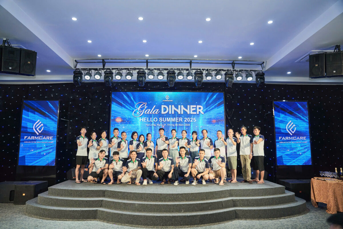 Nếu buổi chiều là sự bùng nổ của sức trẻ trên bãi biển, thì đêm Gala Dinner lại là khoảng thời gian lắng đọng và ấm áp. Trong không gian sang trọng bên bờ vịnh, Ban lãnh đạo công ty đã có những chia sẻ tâm huyết về định hướng chiến lược sắp tới, đồng thời gửi lời tri ân sâu sắc đến toàn thể cán bộ nhân viên – những người đã và đang cống hiến hết mình cho thương hiệu Farmcare.