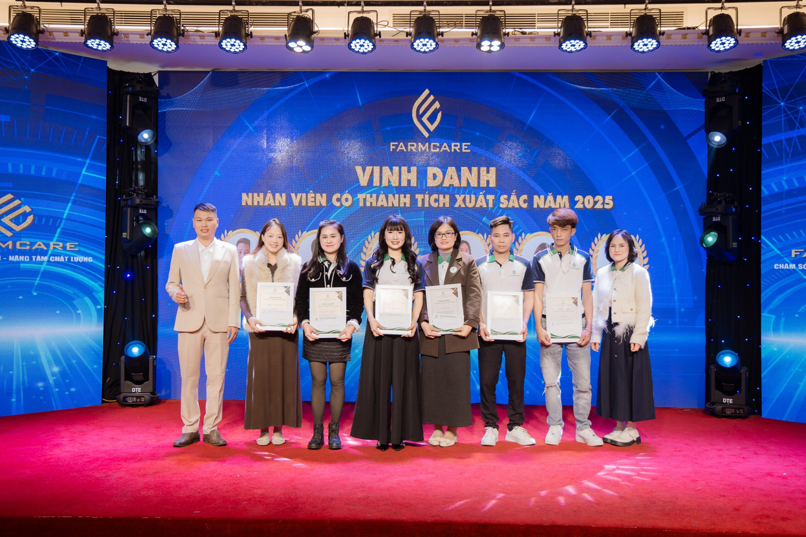 Trong đêm tiệc tất niên, một khoảnh khắc đặc biệt đã làm bừng sáng không gian: lễ vinh danh nhân viên xuất sắc năm 2025. Đây là phần nghi thức trang trọng nhằm ghi nhận những nỗ lực bền bỉ, tinh thần trách nhiệm và sự sáng tạo không ngừng của những cá nhân tiêu biểu trong tập thể Farmcare.